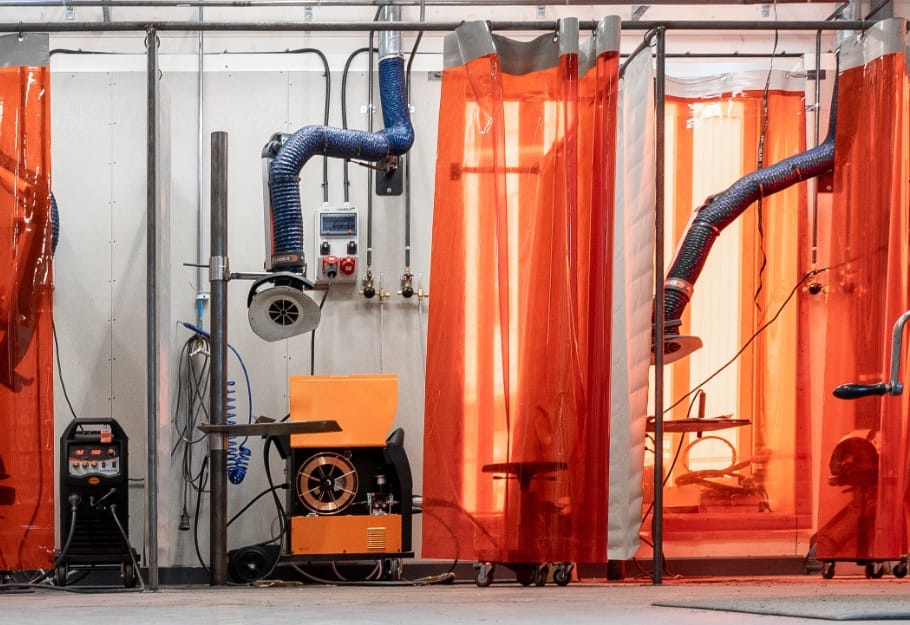 Es sollte immer eine Punktabsaugung verwendet werden, um die Ausbreitung von Schweißrauch auf den Rest des Raumes zu verhindern. Schweißer sollten immer persönlichen Atemschutz tragen.
