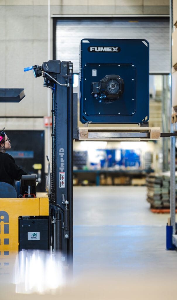Bei Fumex minimieren wir auch unser Transportvolumen durch smarte Produktlösungen. Die Produkte sind mit recycelter Wellpappe verpackt, die nach dem Transport problemlos recycelt werden kann. Außerdem werden größere Waren auf zugelassenen Europaletten geliefert, die wiederverwendet werden.