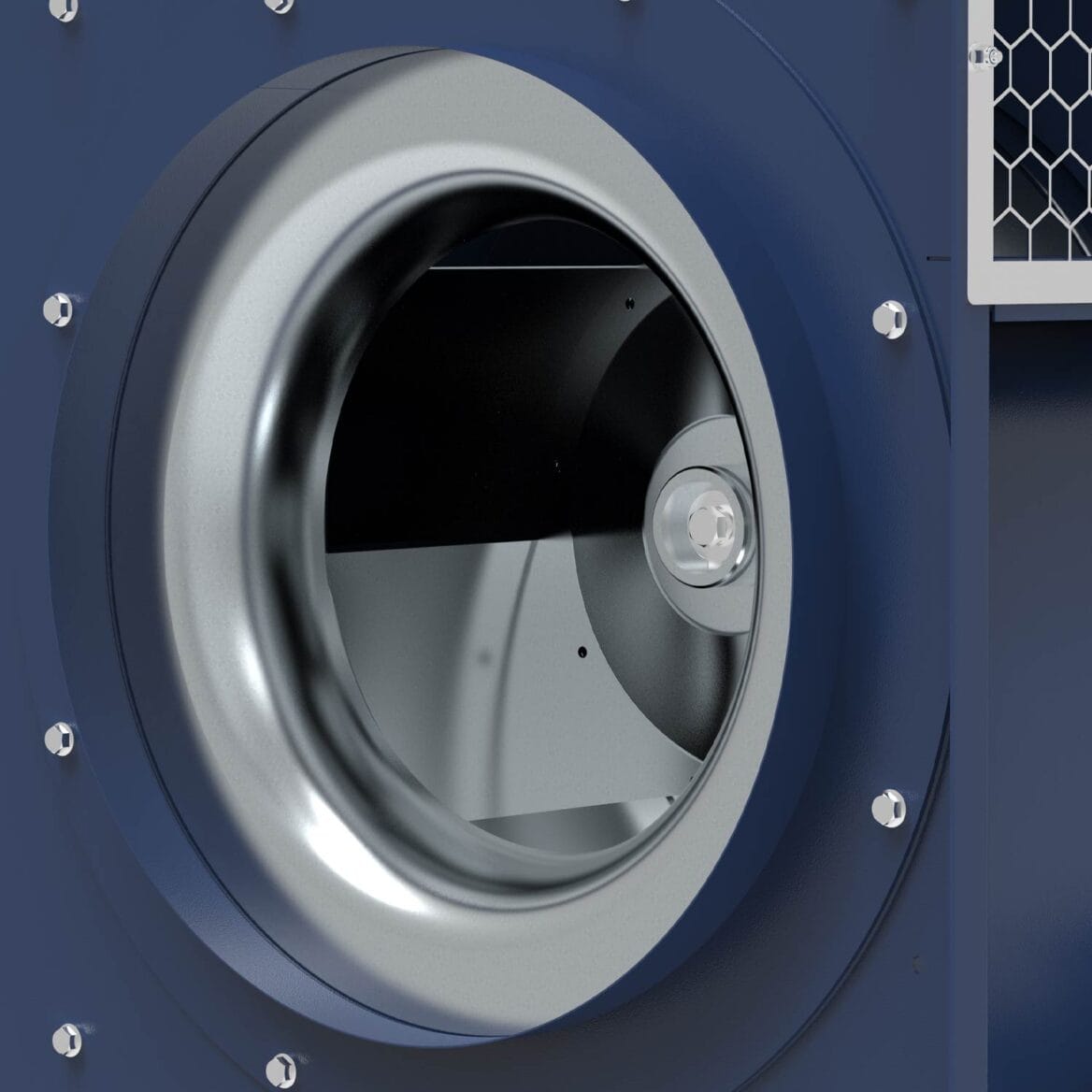 FUMEX FBE – ein energieeffizienter Ventilator, der für industrielle Umgebungen entwickelt wurde und sowohl in Innenräumen als auch im Freien installiert werden kann. Zur Absaugung von nicht explosionsfähigen Gasen, Dämpfen und leichteren Partikeln mit Luftströmen bis 15.000 m³/h (4160 l/s). Das Laufrad hat rückwärts gekrümmte Schaufeln und ist aus geschweißtem, verzinktem Stahlblech gefertigt.