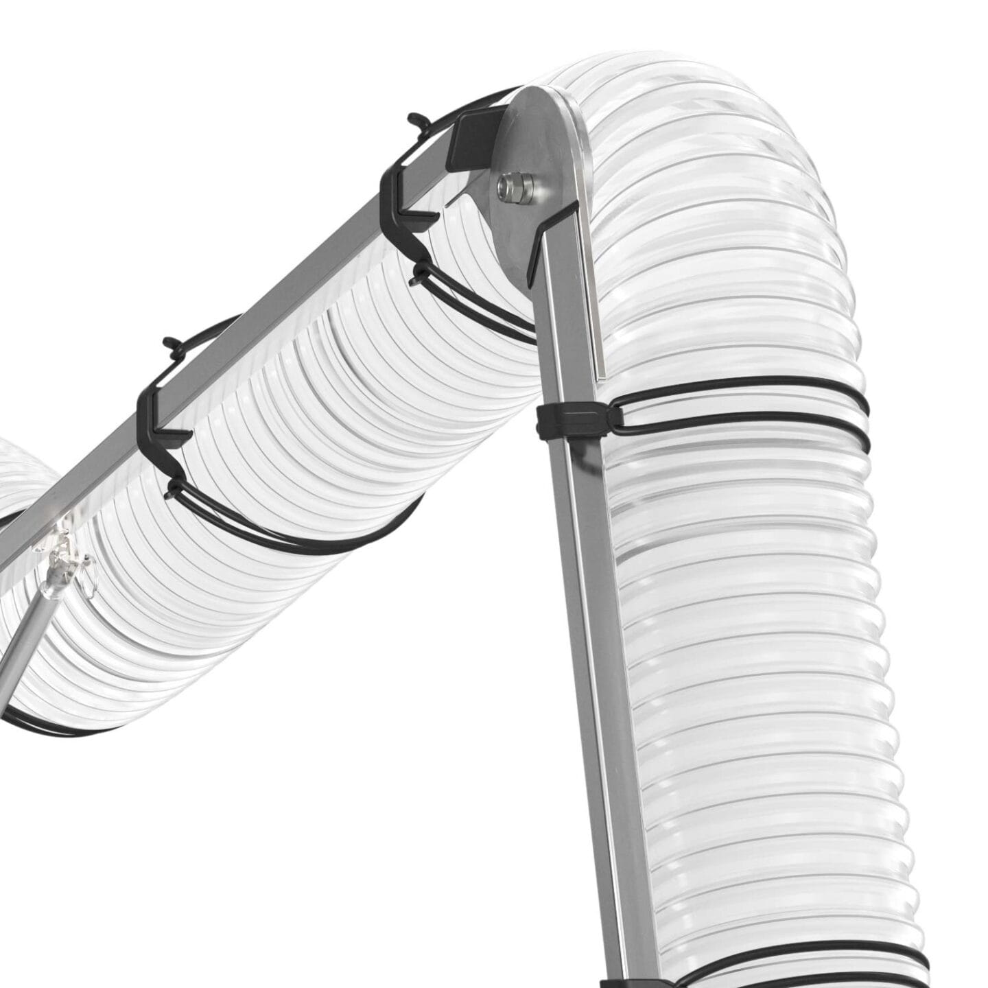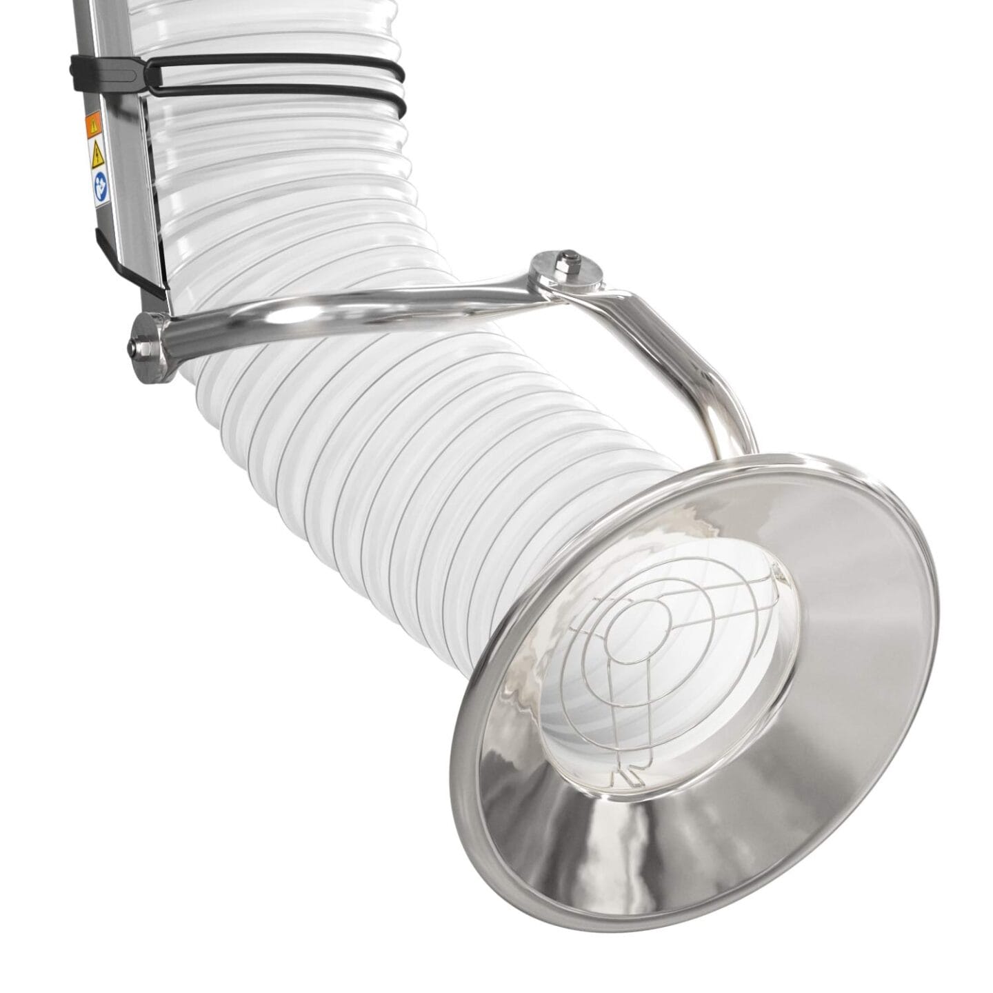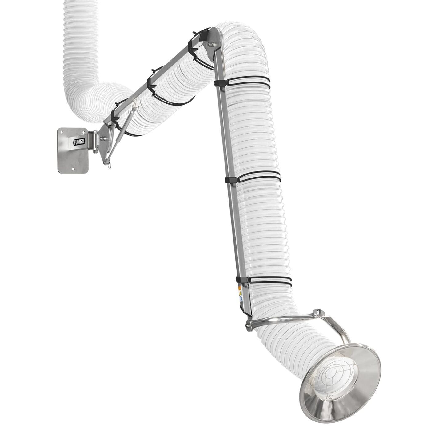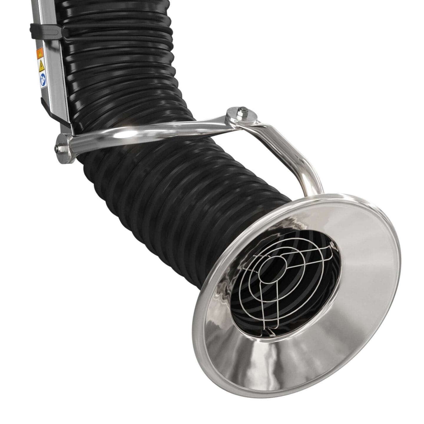 FUMEX PSR – stilvolles Edelstahldesign speziell für Branchen mit explosionsgefährdeten Arbeitsumgebungen. Die Konstruktion baut auf dem FUMEX-Grundprinzip der externen Tragarme auf, was den geringstmöglichen Druckabfall und eine geringe Verstopfungsgefahr gewährleistet. Das komplette Oberflächen-Finish besteht aus poliertem Edelstahl, und der Schlauch ist mit Schnellverschlüssen angebracht, was eine sehr schnelle und einfache Reinigung ermöglicht.